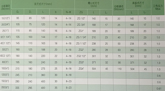 法蘭、螺口、承插止回閥規(guī)格尺寸表